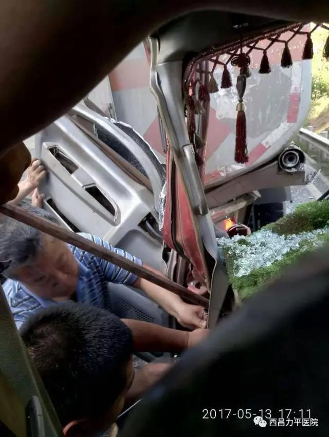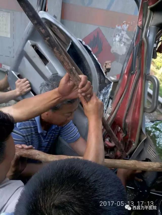 2017年5月13日17时,在西昭公路梭梭沟路段,突发一起交通事故,一货车与油罐车相撞,货车由于车头严重变形,有四条生命被困车内,其中包括两名儿童。然而,被撞的油罐车面临着随时都有起火爆炸的危险。在这危难之际,正遇路过此处的西昌力平医院董事长胡力平一行人员,见状,立即组织进行救援,胡力平董事长亲自撬开变形的车门,完全不管油罐车起火爆炸的危险,亲力亲为,与同行人员进行现场救援。经大家20多分钟的全力以赴,在交管部门的到达前,四名受困人员全部脱险。其中,除司机受伤较严重外,其余均无大碍。这样的行为,真正彰显了医者仁心。力平医院一直以“仁医、康民”为愿景,在“诚信.规范”办院宗旨的引导下,把“感恩心做人,责任心做事”作为永远的追求。